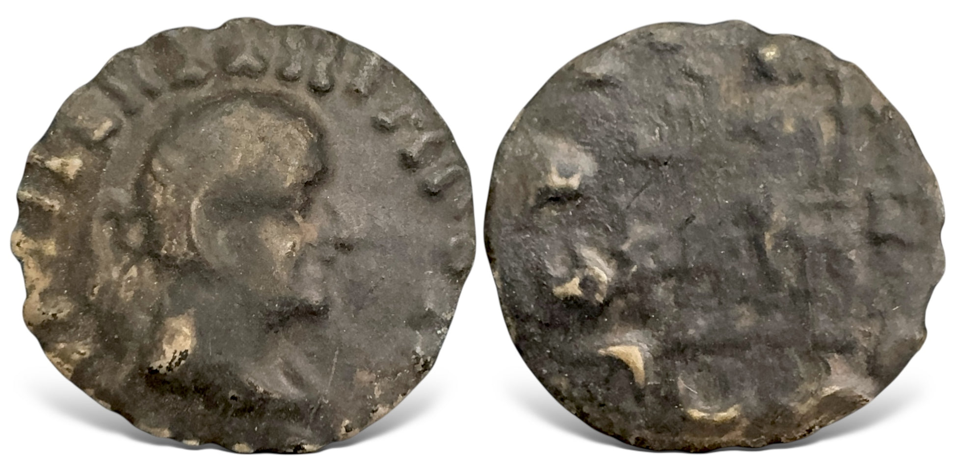 Diademed and draped bust right / Zeus enthroned facing slightly left, holding scepter, monogram to left.