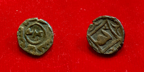 Obverse: Jou in ornate hexilobe within square border / Reverse: Ghazna in small circle in centre date around.Extremely fine nice strike. Unpublished & Extremely Rare.