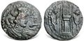 Bust right, wearing winged crown surmounted by bull’s head / Fire altar flanked by tamghas; stars above tamghas. Zeno-358298 (It's me there) / Vondrovec [Göbl, Hunnen] Type 203.