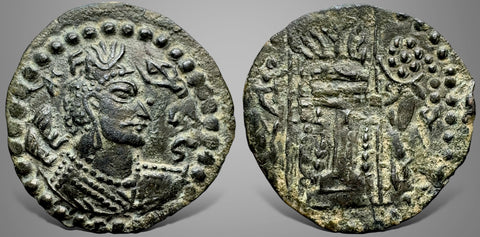 Hunnic Tribes, Western Turks, Shahi Kings of Kabul and Gandhara, Sri Sahi with Brahmi legend. (Circa 650-750 AD). AE Hemidrachm.