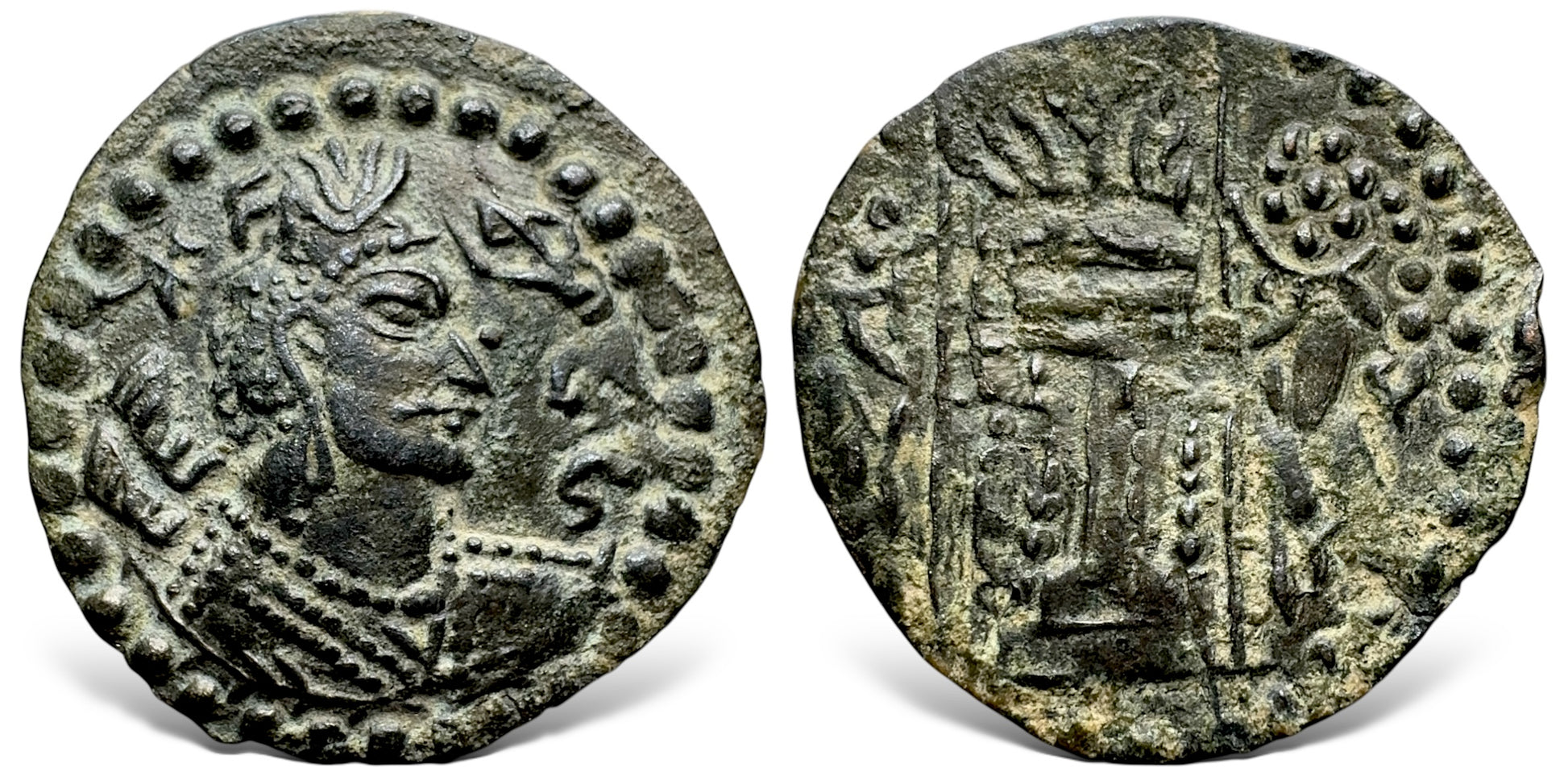 Hunnic Tribes, Western Turks, Shahi Kings of Kabul and Gandhara, Sri Sahi with Brahmi legend. (Circa 650-750 AD). AE Hemidrachm.