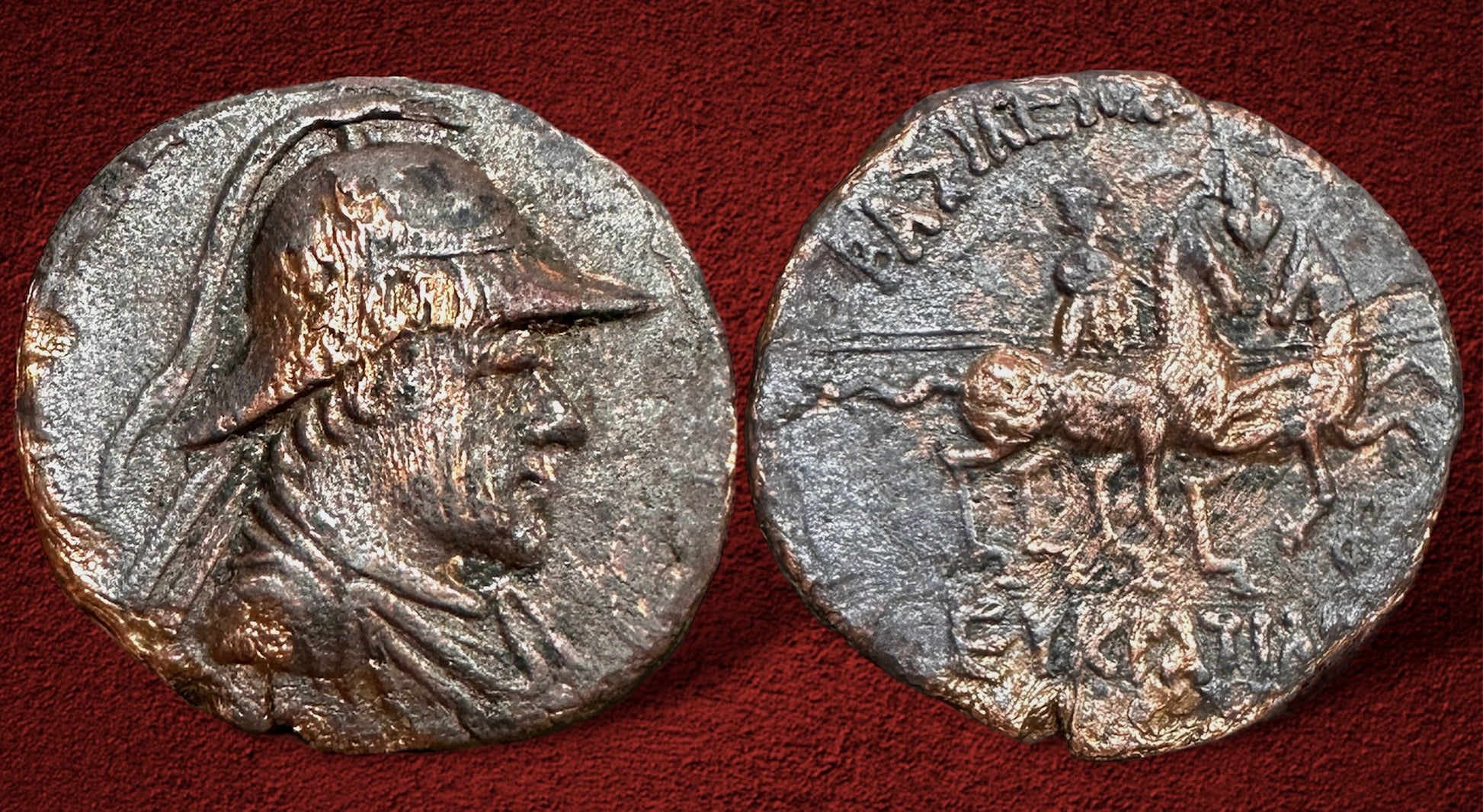 Baktria, Greco-Baktrian Kingdom. Eukratides I Megas. Circa 170-145 BC. AE Double Unit