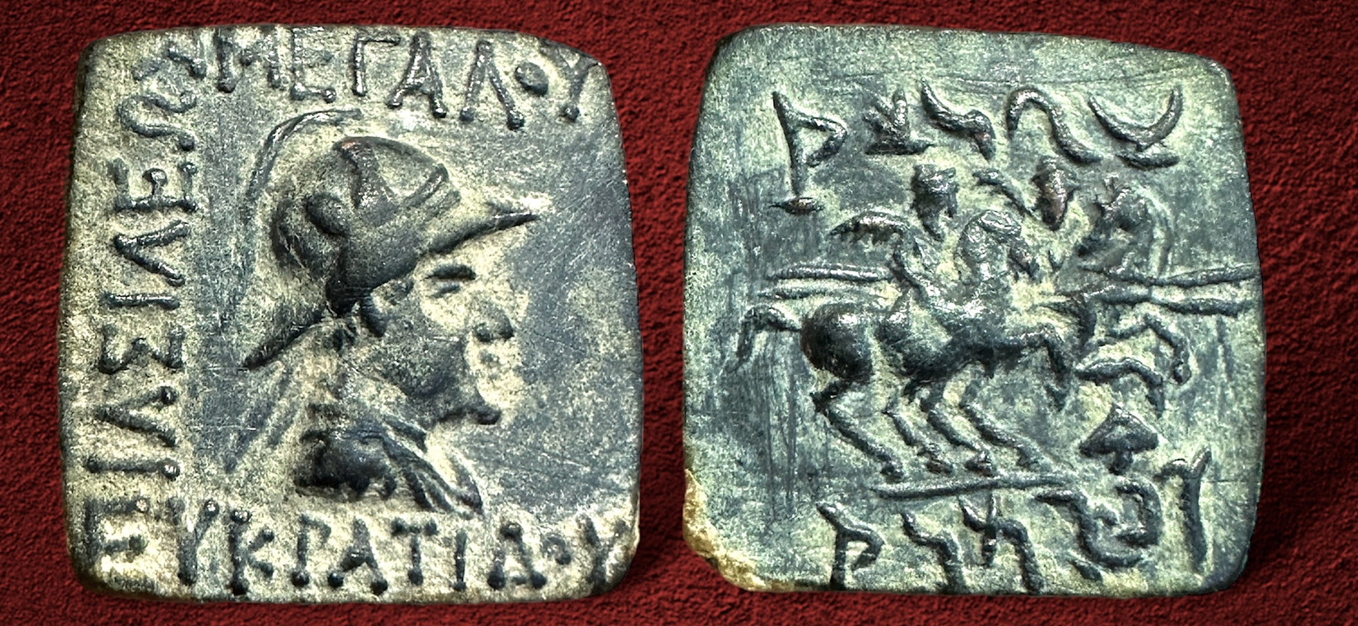 Baktria Greco-Baktrian Kingdom. Eukratides I Megas. Circa 170-145 BC. AE Quadruple unit.