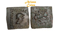 right holding palm fronds and spears monogram to upper right. EY to lower right. Bopearachchi 19E SNG ANS -. Good very fine dark brown/brown patina.