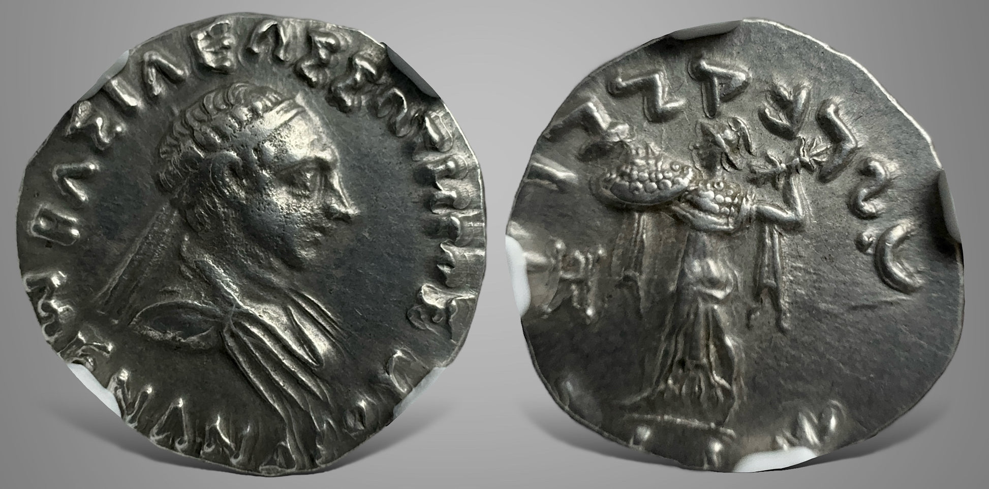 Indo-Greek Kingdom. Menander I Soter. (Circa 155-130 BC). AR Drachm. NGC Graded Ch XF.