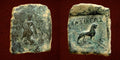 Female advancing left holding flower / Lion standing right.