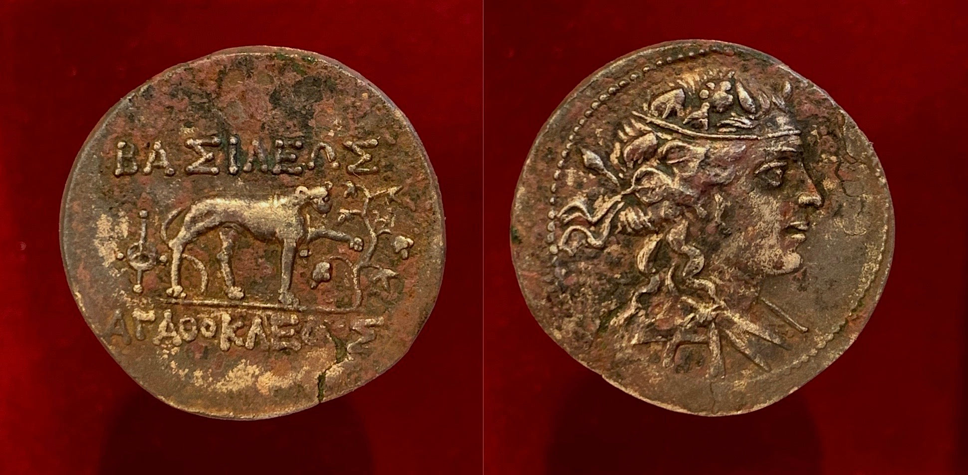 Baktria, Greco-Baktrian Kingdom. Agathokles Dikaios. Circa 185-175 BC. CU-NI Double Unit