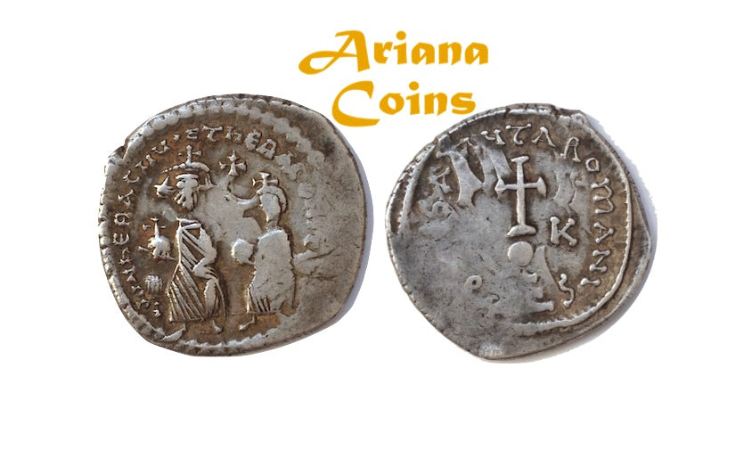 Byzantine, Heraclius, with Heraclius Constantine. 610-641. AR Hexagram. Rar this nice.