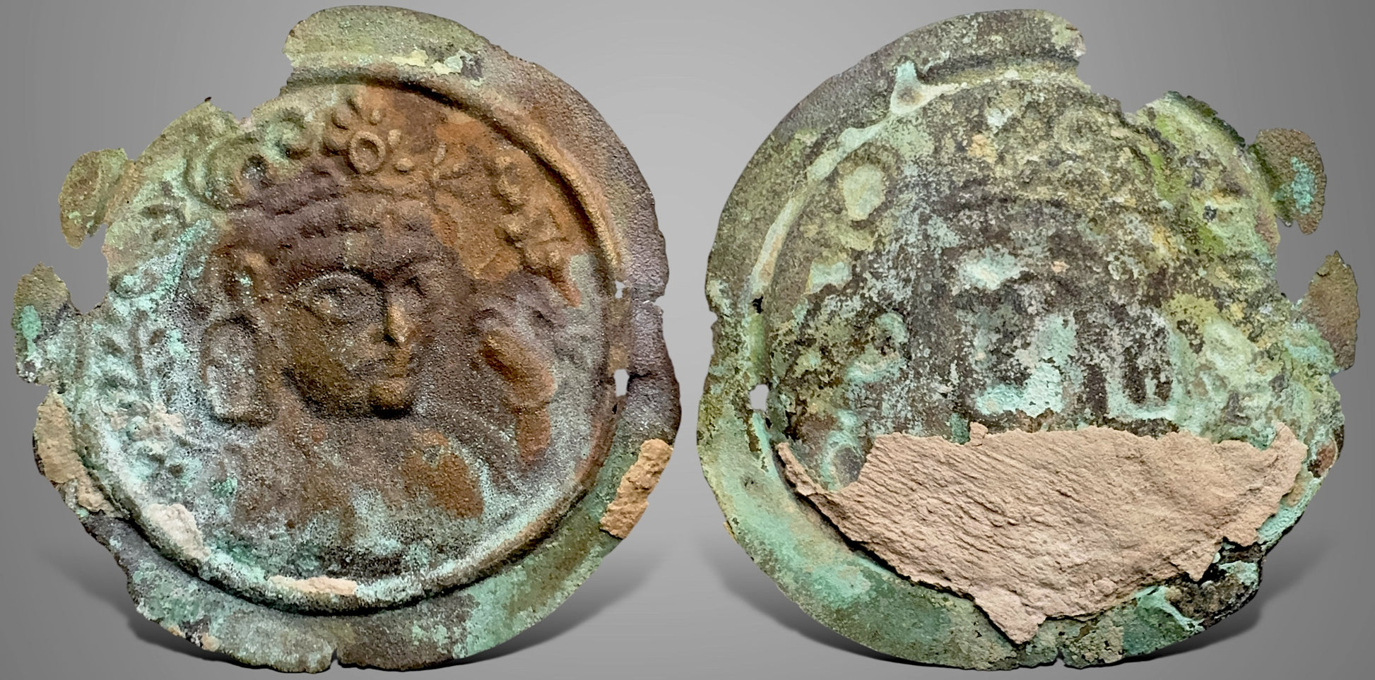 Zeno#366962 (It's me there). Good very fine, attractive multi colour patina with finding earthen deposit, areas of edge chipping. RRR