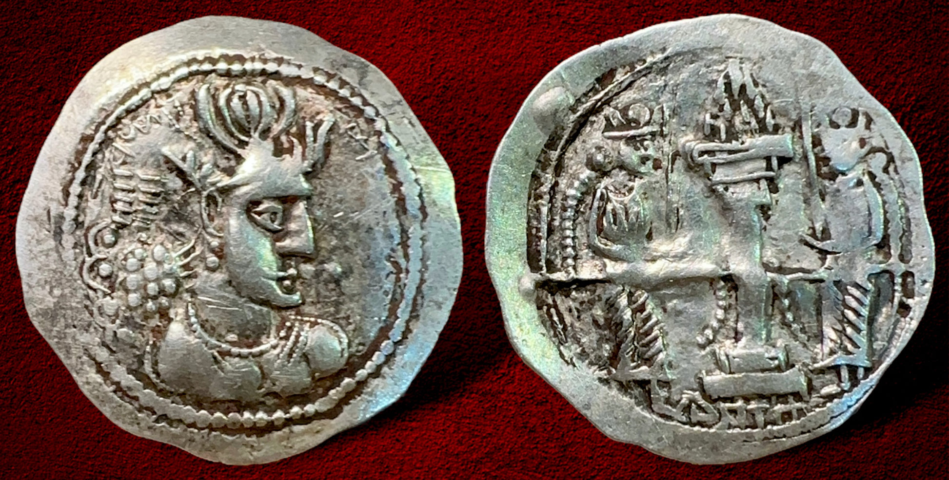 Hunnic Tribes, Kidarites. Uncertain King. 5th century AD. AR Drachm. Sasanian Bahram style. Very rare.
