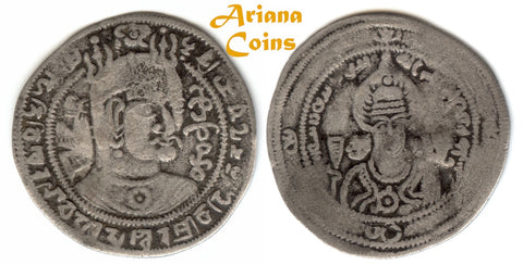 Hunnic Tribes, Nezak Huns. Sahi Tigin (Tarkhan Nezak). Early 8th century AD. AR Drachm. Rare