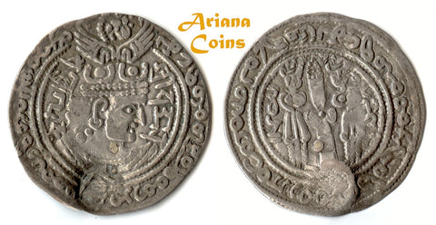 Hunnic Tribes, Turco- Hephthalite, Nezak Huns. Shahi Tegin (Sri Shahi). 680-738. AR Drachm. Extremely fine & Rare Variety