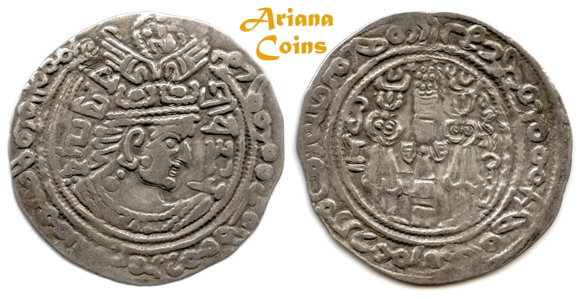 Hunnic Tribes, Turco-Hephthalite, Nezak Huns. Shahi Tegin (Sri Shahi). 680-738. AR Drachm. Rare variety, no Tamgha & gold plug on neck.