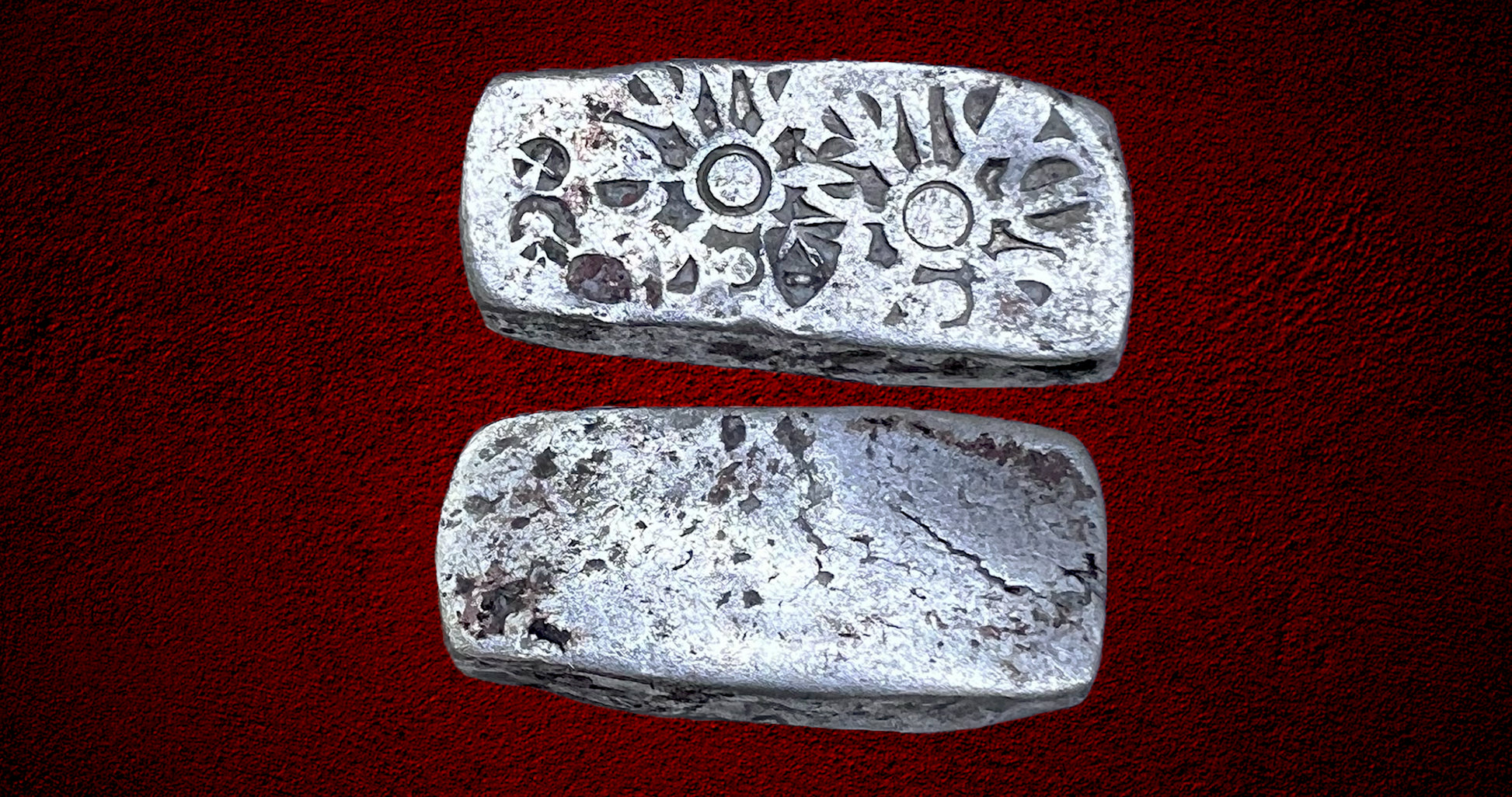 India Gandharan Taxila AR shatamanabent short bent bar Circa 500-300 BC.