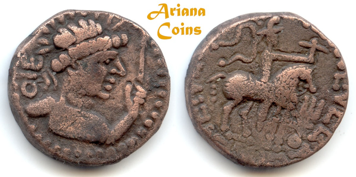 tamgha to left / Vima Takto on horseback right holding whip tamgha to