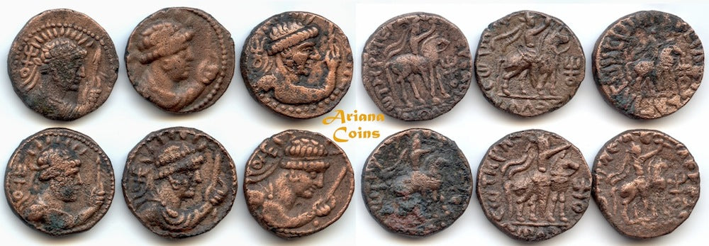 INDIA Kushan Empire. Vima Takto (Soter Megas). Circa AD 80-100. Lot of 6 Æ Tetradrachms.