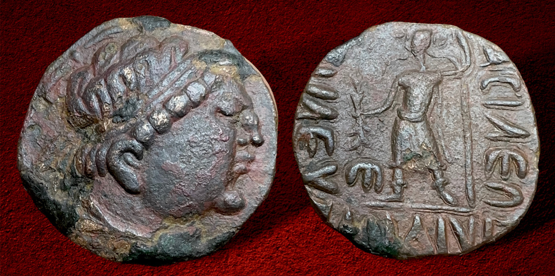 India Kushans, Yueh-Chi. Anonymous. 1st century BC AE Tetradrachm. Imitating Heliokles I of Baktria