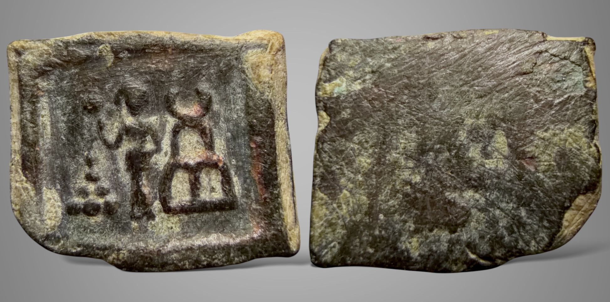 India, Taxila local issues, post-Mauryan (Circa 2nd century BC). AE Unit. Female figure type. Very Rare