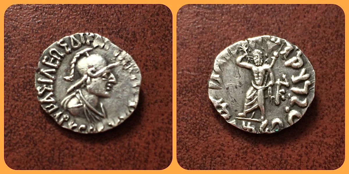 Indo-Greek Kingdom. Archebios Dikaios Nikephoros. Circa 90-80 BC. AR Drachm.
