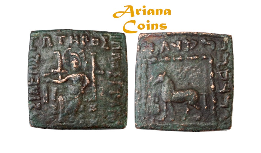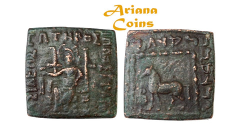 Indo-Greek Kingdom. Hippostratos. Circa 65-55 BC. AE Square Double Unit.