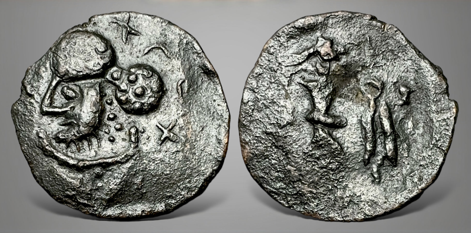 Indo-Parthian, Imitation or later Indo-Parthians in Arachosia. Unknown king. 2nd century AD. AE Tetradrachm. Superb luster