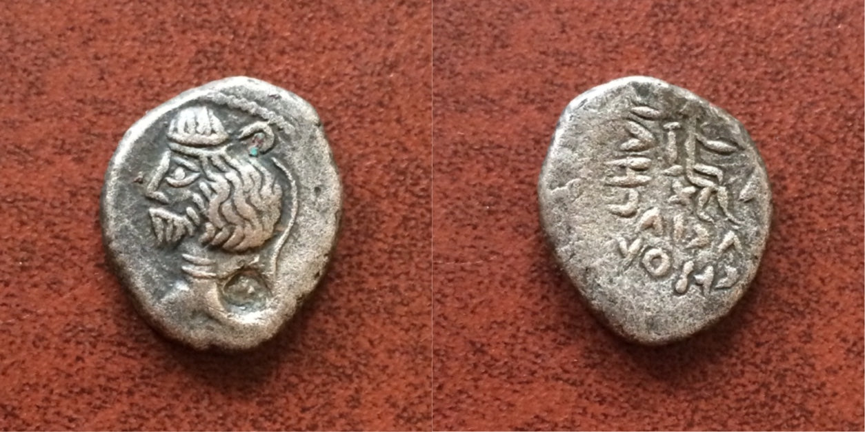 Indo Parthian Margiana or Sogdiana. King B. 50 BC-100 AD. Countermark on an imitation Parthian AR Drachm.