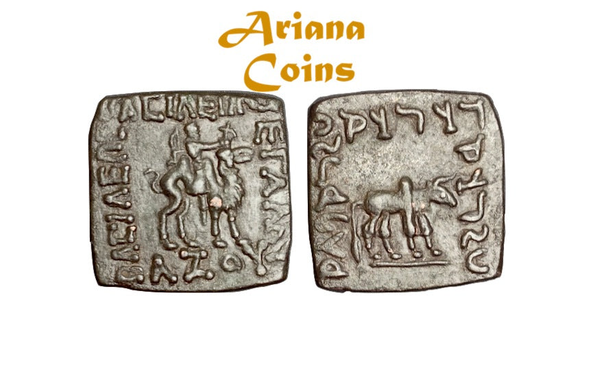 Indo-Scythians, Azes I 57-35 BC. AE Square Half Unit. Superb and Rare