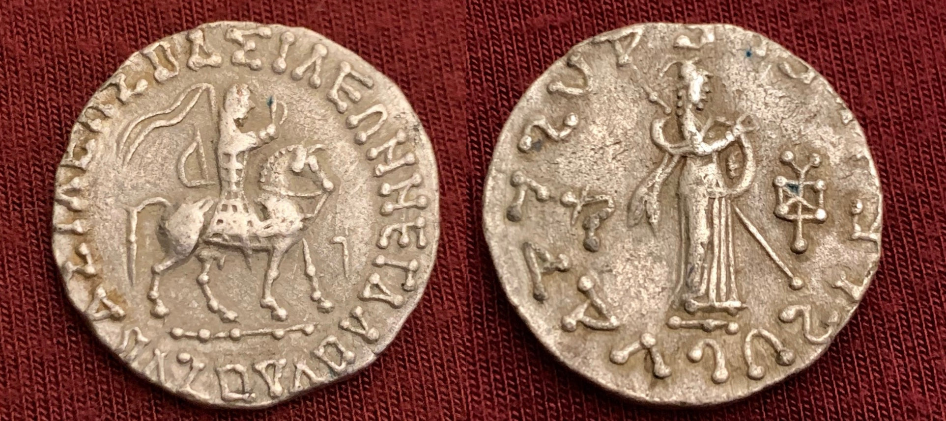 9.47gm. King on horseback right holding spear / Zeus standing slightly
