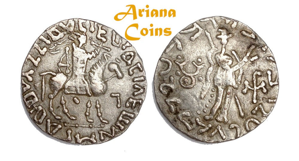 Indo-Skythians Posthumousm Azes II. Circa 35-12 BC. Tetradrachm.