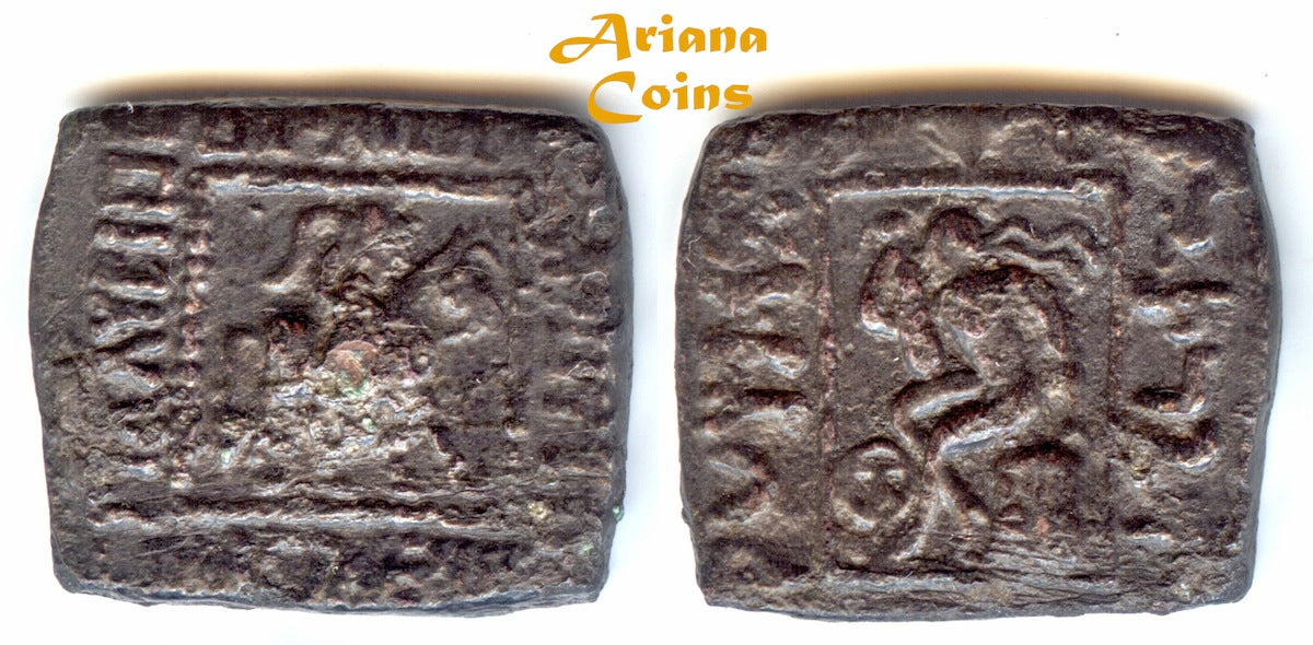 Indo-Skythians Spalahores with Spalagadames. Circa 75-65 BC. AE Hemiobol.