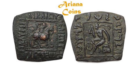 Indo-Skythians Spalahores with Spalagadames. Circa 75-65 BC. AE Hemiobol.
