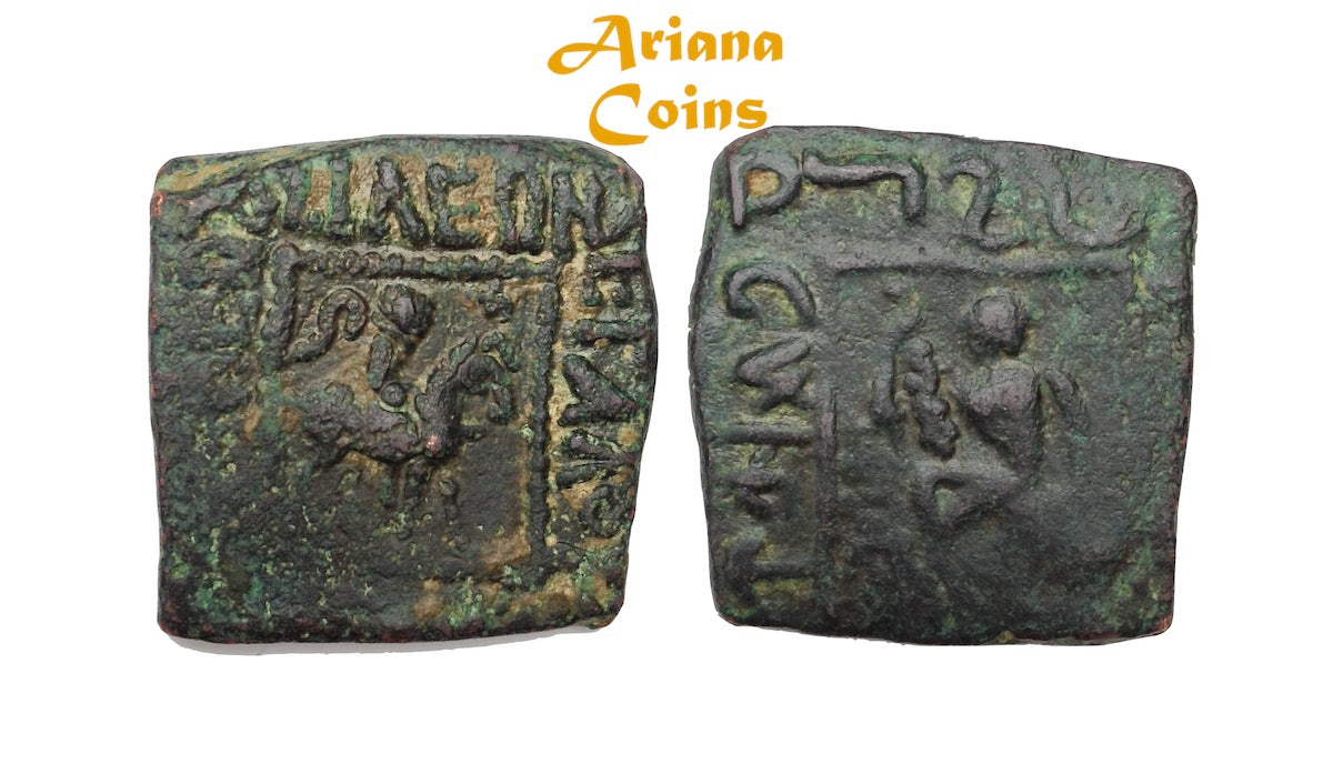 Indo-Skythians, Spalahores, with Spalagadames. Circa 75-65 BC. AE Hemiobol.