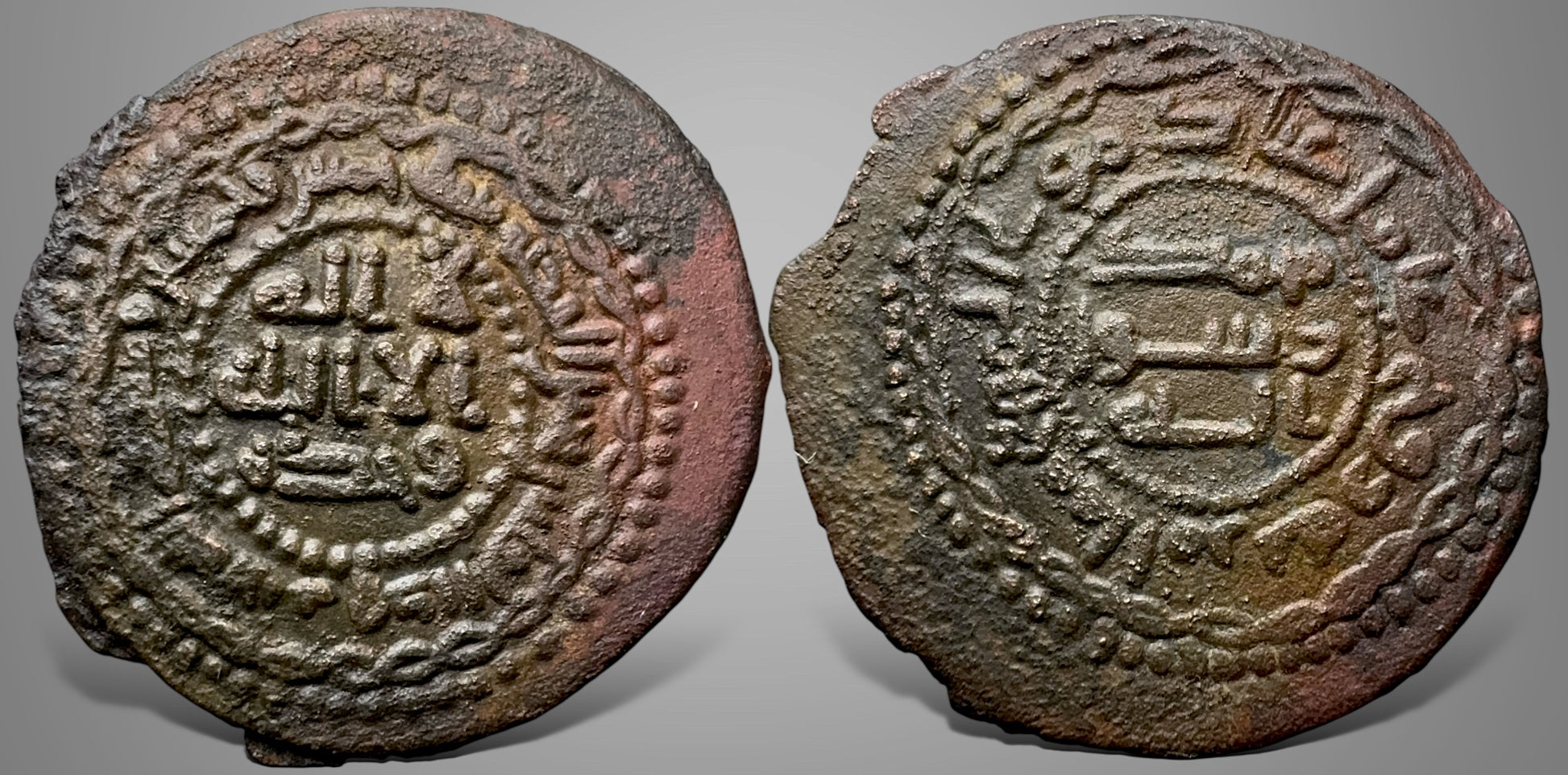 3.15gm, 18.5mm, year 155AH, minted in Jabal Fidda (جبل الفضة) meaning "The Silver Mounatain"