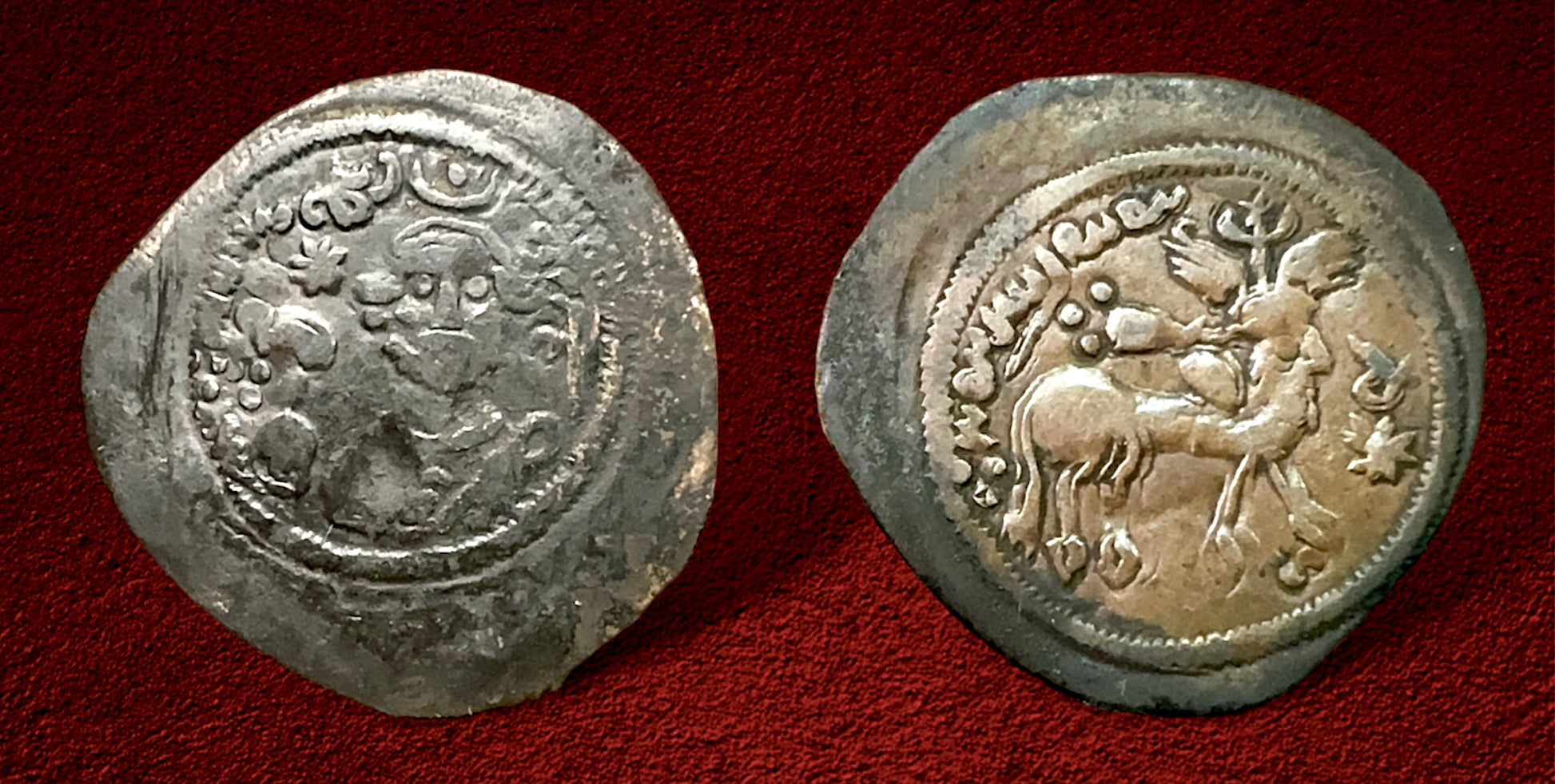 Pahlavi to left the name(?) “Ābāy” to right circle border / Crowned