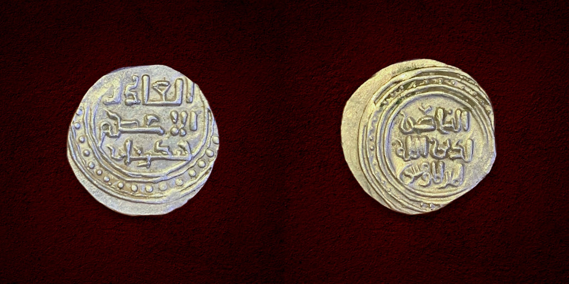 Kufic legend (العادل الاعظم چنگيز خان) al-adil | al-a'zam | Chingiz qa'an (The just | The great | Chingiz Khan) / Kufic legend، (الناصرالدين الله امير المؤمنين al-Nasir | al-Din Allah | amir al-mu'minin