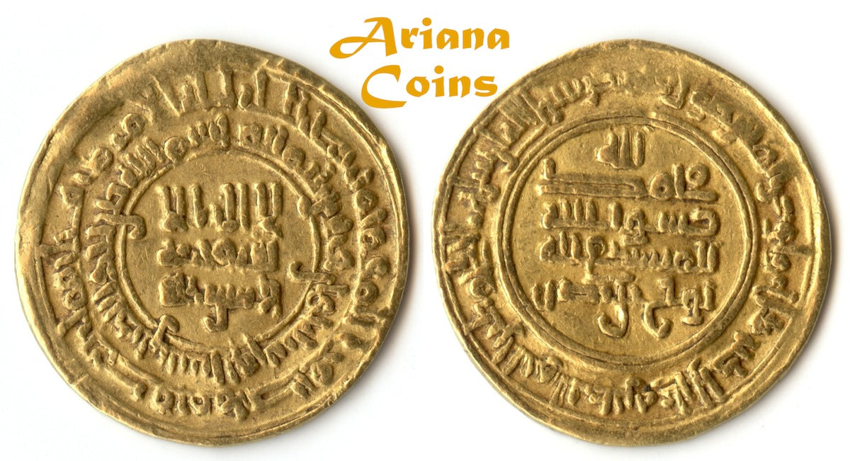 Islamic Samanid Nuh bin Nasr (نوح بن نصر AH 331-343) AV Dinar Mint Nishapur citing al Mustakfi