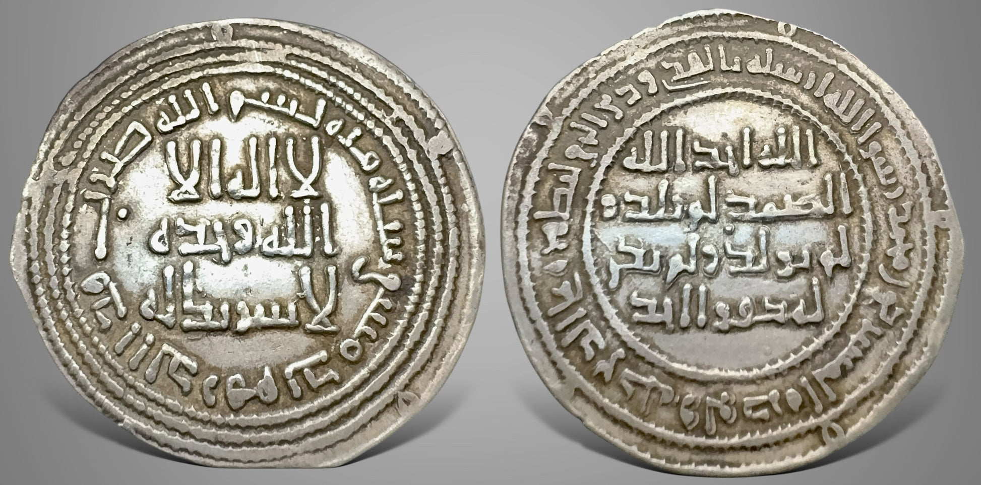 2.78gm, 26.8mm. Minted in Dimashq (دمشق), Year 100 AH.