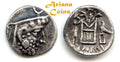 13.38mm 1.54gm. Head right with short beard wearing diadem and