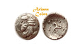 14.85mm 1.59gm. Bearded bust left wearing diadem three large curls / Triskeles legend around.