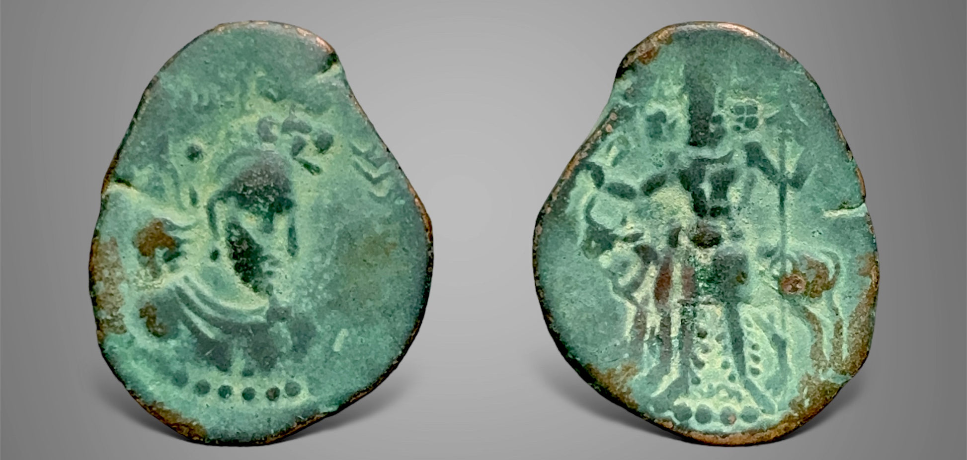 MK 1032 Cribb type 22v. Very fine natural green patina.