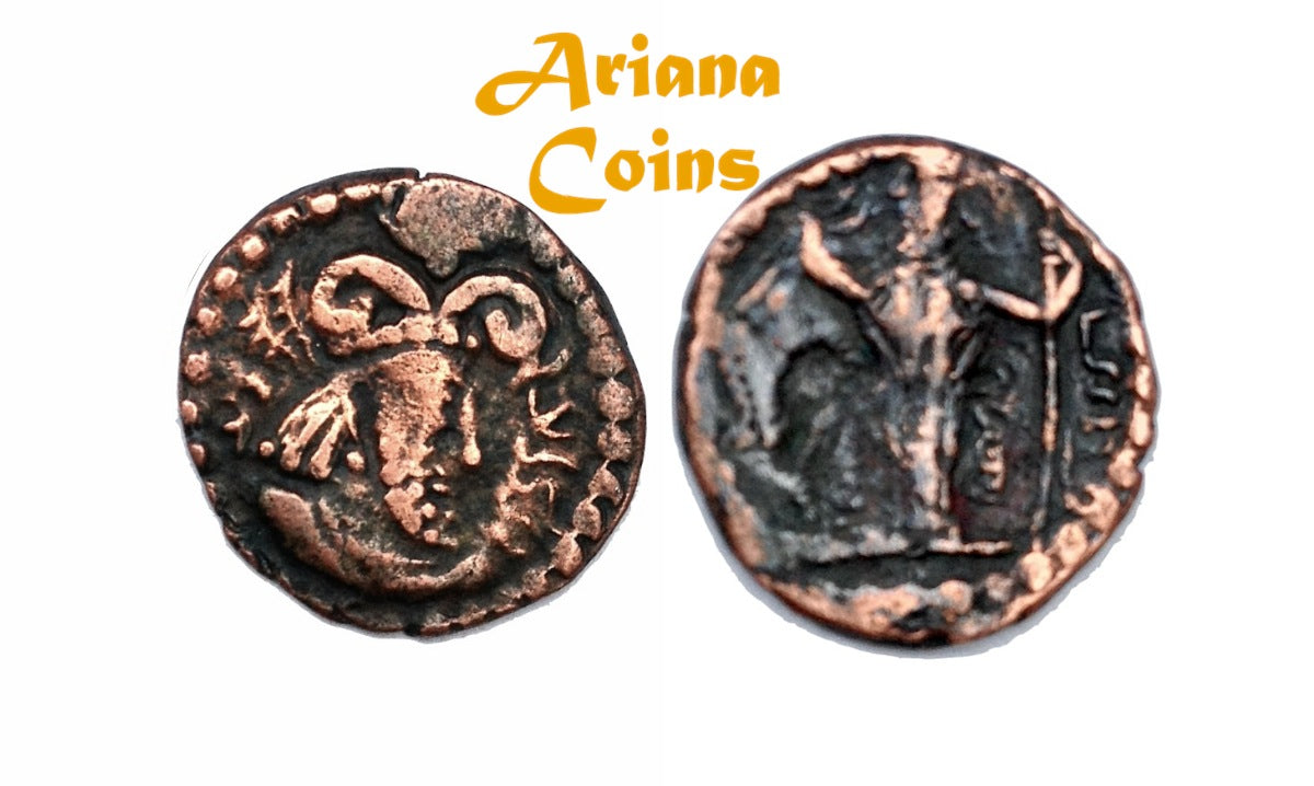 14.14mm 1.23gm. Gandhara mint?. Crowned bust right wearing ram's horns headdress with 'artichoke' ornament above / Fire altar with bust of Ahura Mazda/Mithra (?) above. Pahlavi legend very clear.