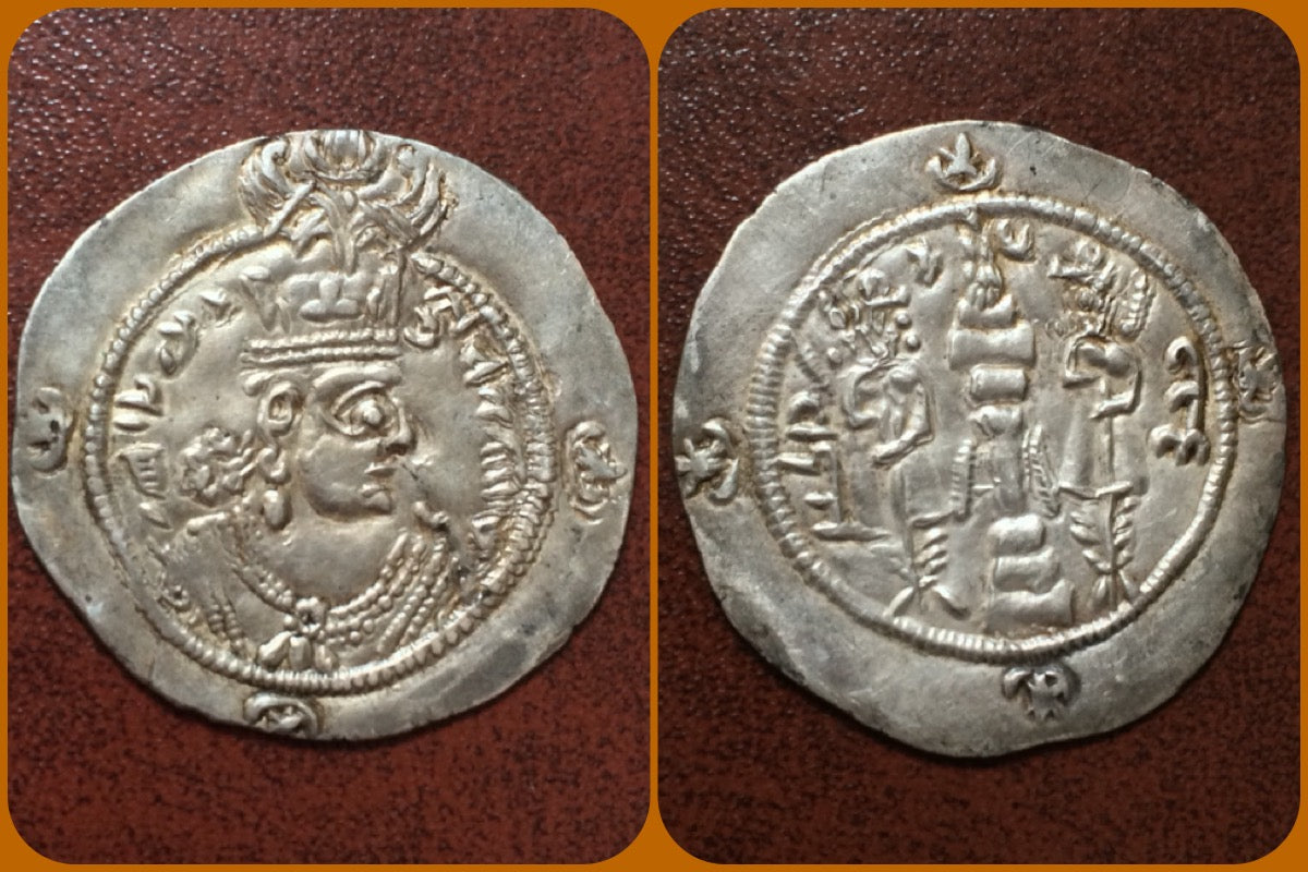 Sasanian Kings. Ardashir III (اردشیر سوم) AD 628-630. AR Drachm. On the Throne at the age of 7 , SK mint, Y2