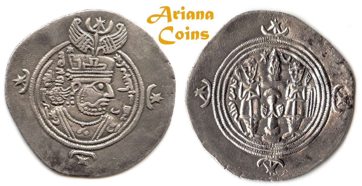 SASANIAN KINGS. Khusru (Husrav) II. 590-628 AD. AR Drachm. RY 32. Good example