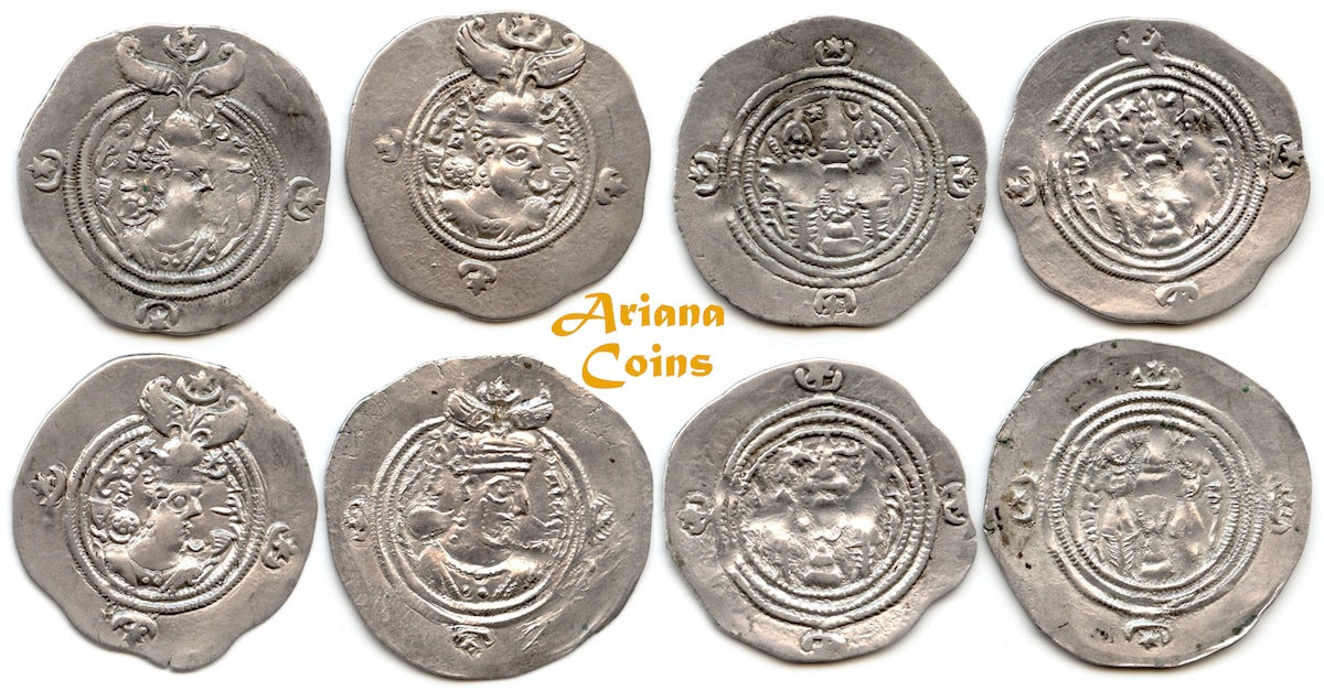 SASANIAN KINGS. Khusru (Husrav) II. 590-628 AD. Lot of 4 AR Drachms.