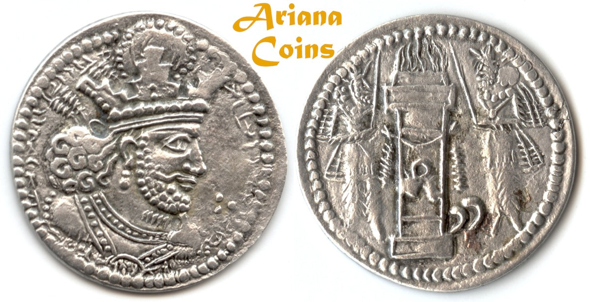 Sasanian Kings, Shahpur II. AD 309-379. AR Drachm. Very rare variety with 3 dots on front.