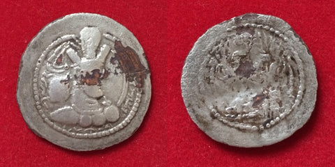 Sasanian Kings, Shapur II. AD 309-379. AR Drachm copper core. RARE with Crescent.