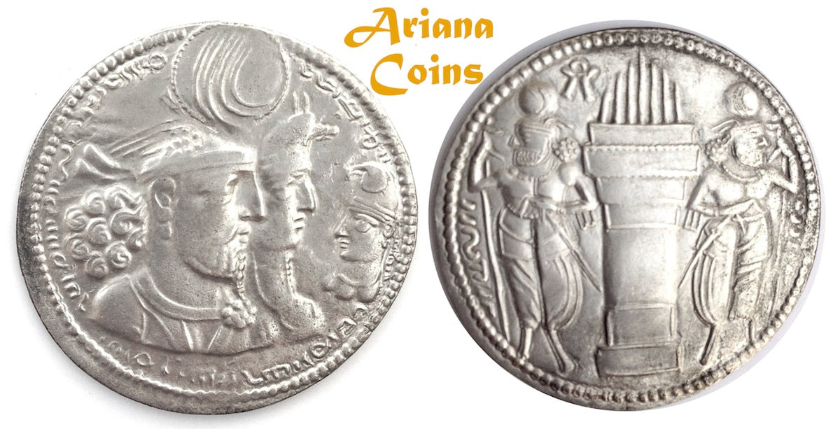 Sasanian Kings. Vahram (Bahram) II, with Queen and Prince 4. AD 276-293. AR Drachm