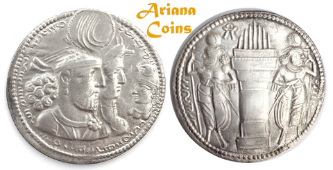 Sasanian Kings. Vahram (Bahram) II with Queen and Prince 4. AD 276-293. AR Drachm.