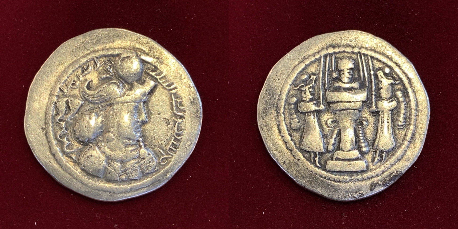22mm 4gm. Crowned bust right / Fire altar flanked by attendants.