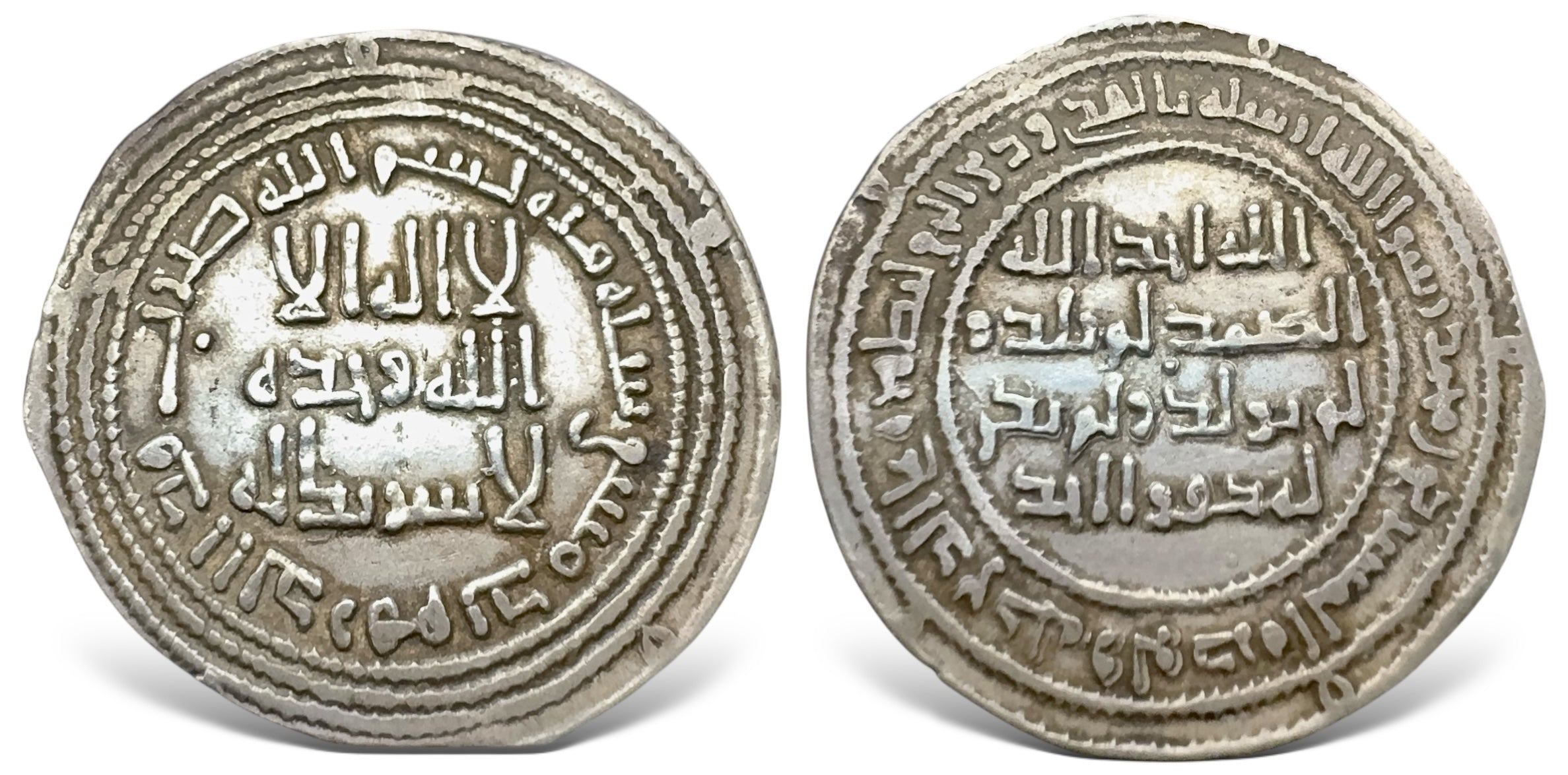 2.78gm, 26.8mm. Minted in Dimashq (دمشق), Year 100 AH.